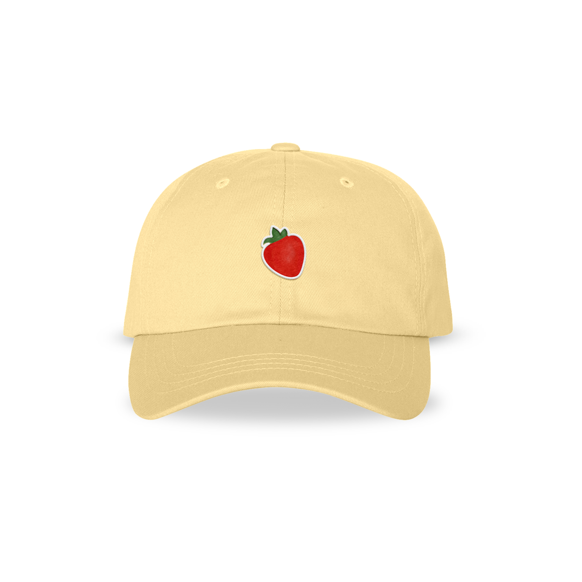 • Yellow hat with a red strawberry emblem on the front center